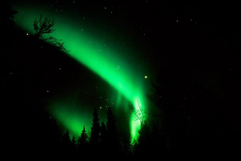 Auch wenn Sie nach einem erfüllten Tag im Bett liegen und von Ihren Wildnis-Erlebnissen träumen, sollten Sie nicht versäumen, sich spät in der Nacht aufzuraffen und ein paar Schritte vor die Haustür zu machen: Mit etwas Glück zaubern die Nordlichter mit ihren wilden Tänzen ein beeindruckendes Spektakel an den Himmel.