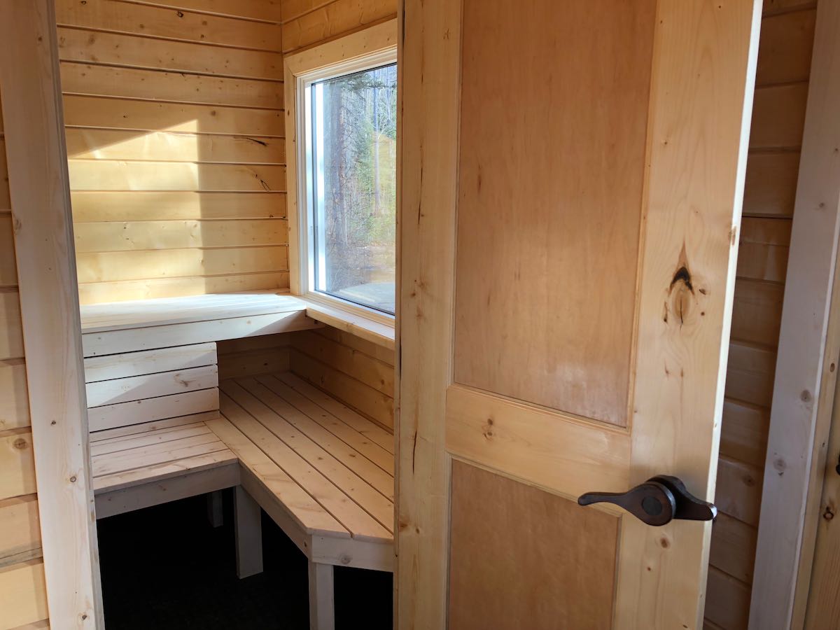 Erholen Sie sich in unserer reizvollen Flussufer-Blocksauna mit grossartiger Aussicht auf die Berge. Und wenn Sie cool drauf sind, springen Sie nach dem Dampfbad in das eiskalte Wasser des Wheaton River.